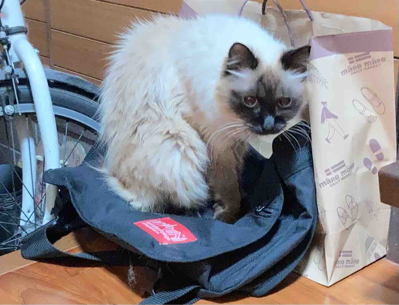 猫は鞄の上で やる気を見せている。